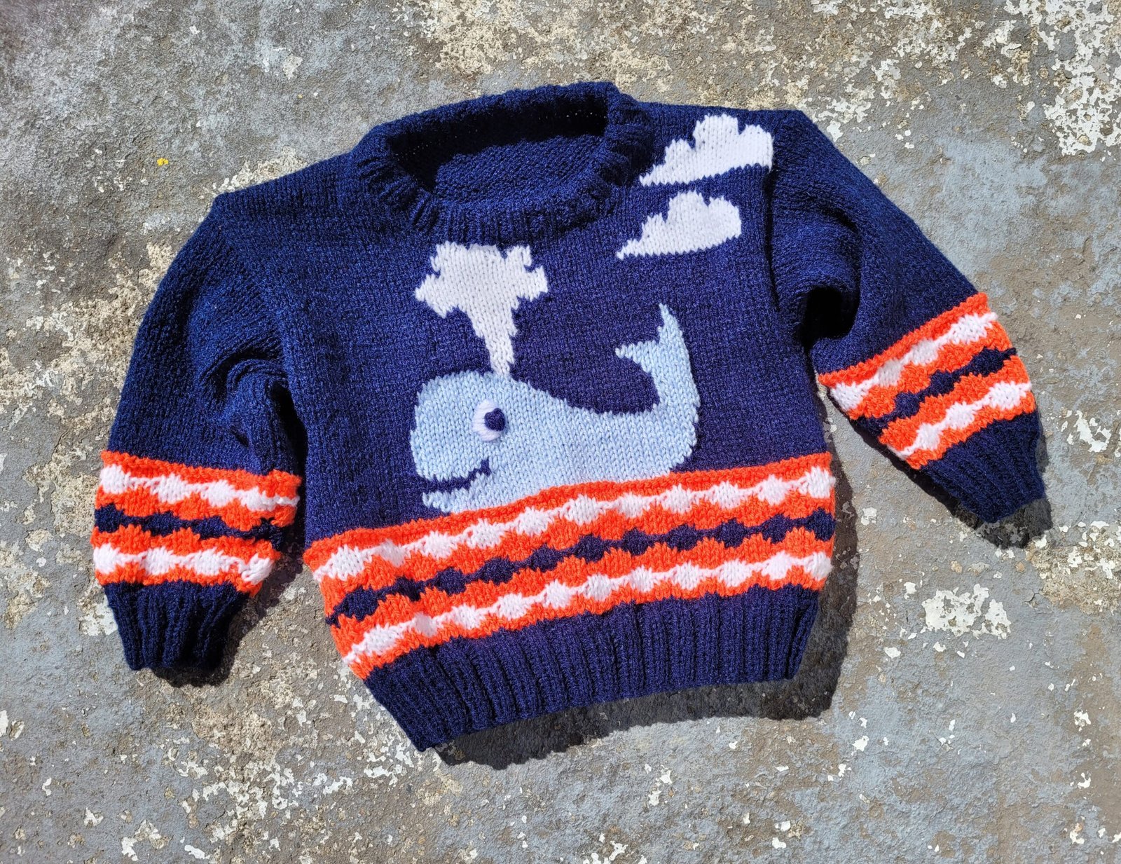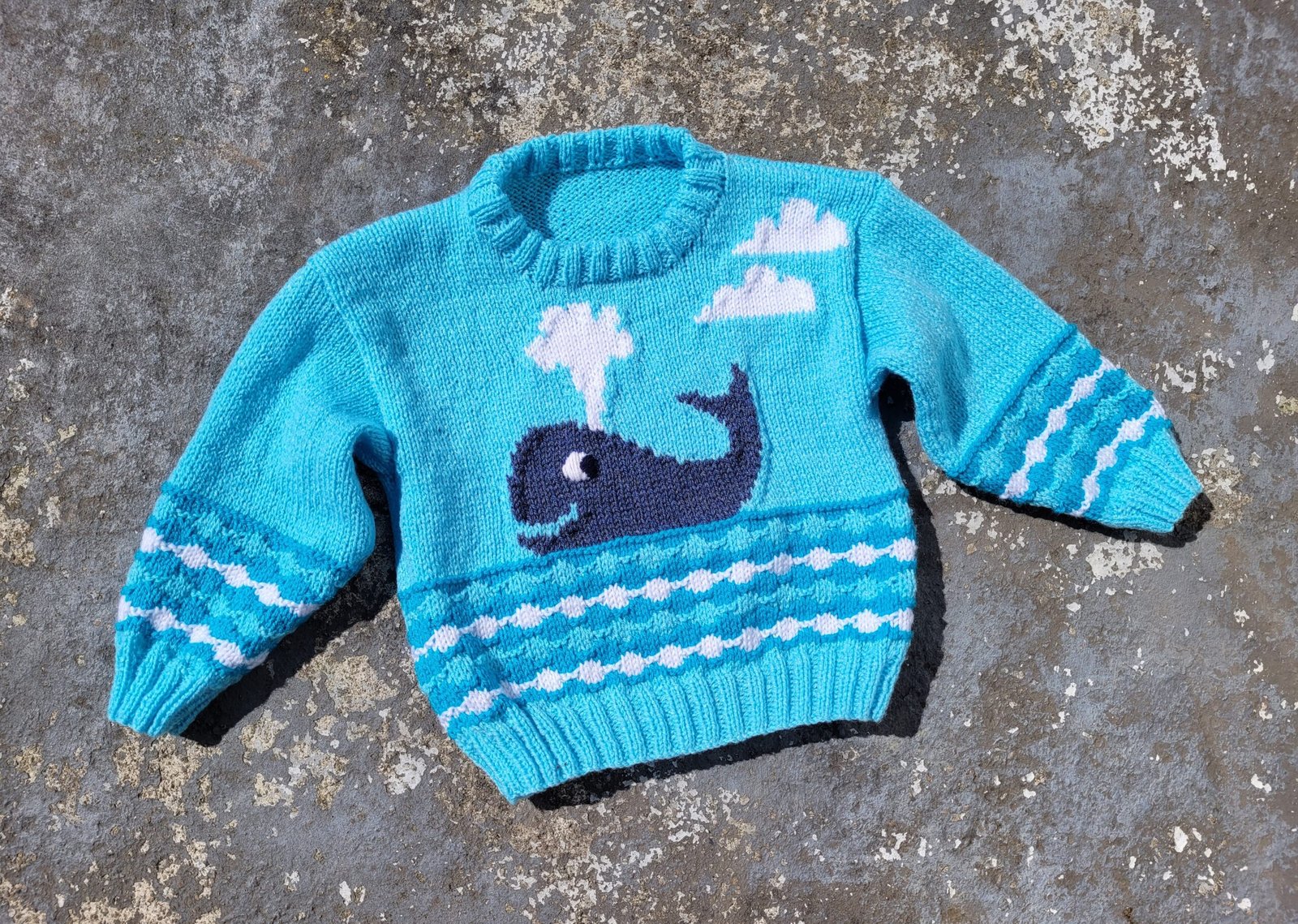 Child’s Whale Watch jumper using 8 ply knitting pattern