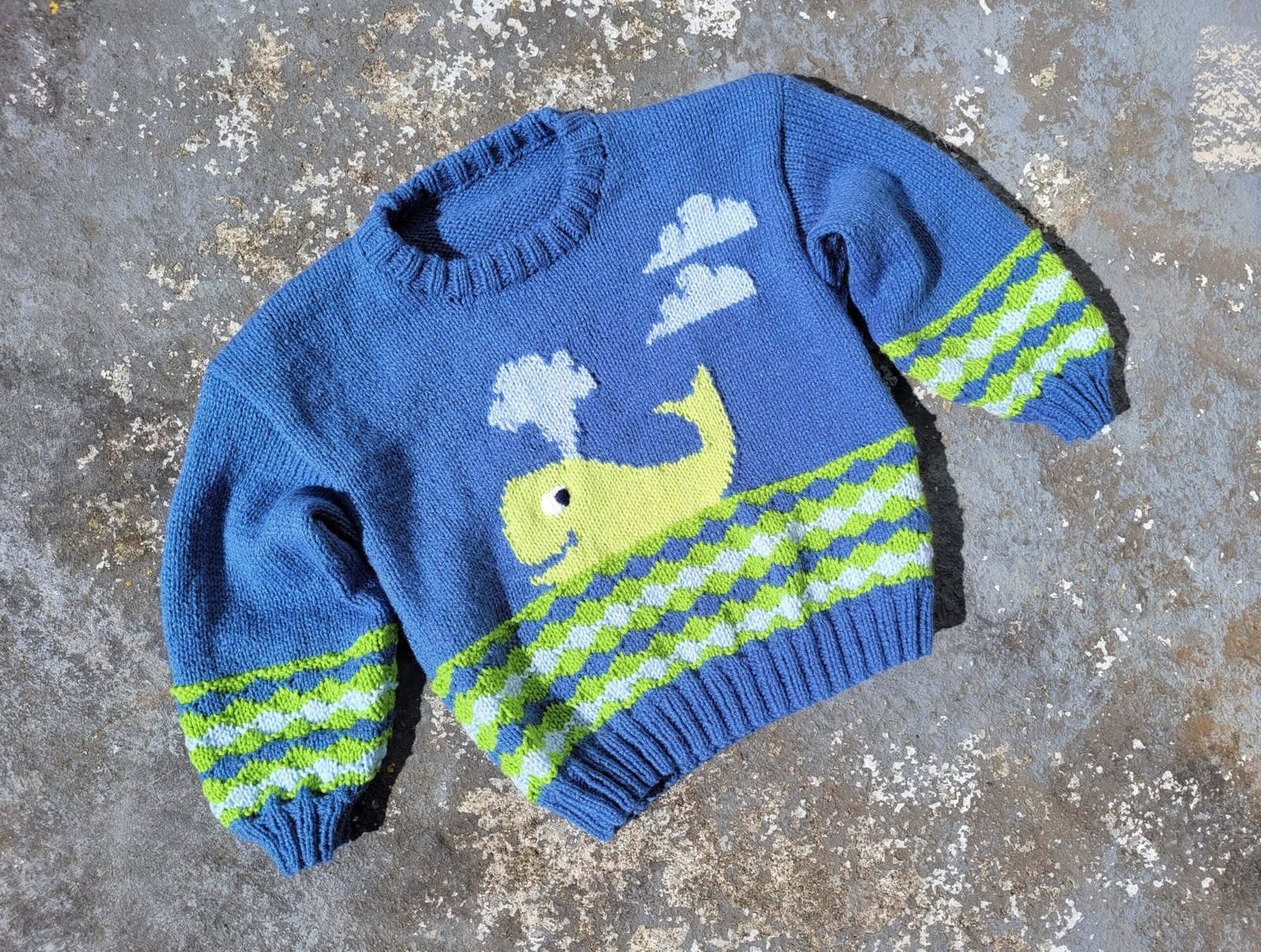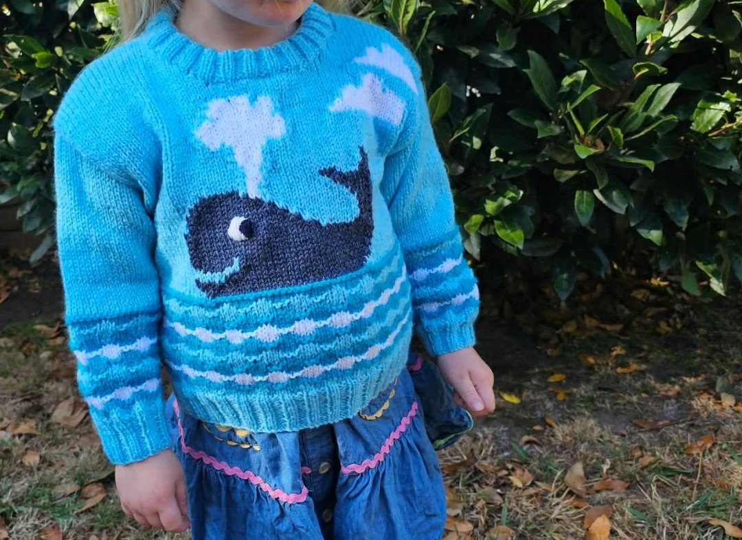 Child’s Whale Watch jumper using 8 ply knitting patternChild’s Whale Watch jumper using 8 ply knitting pattern