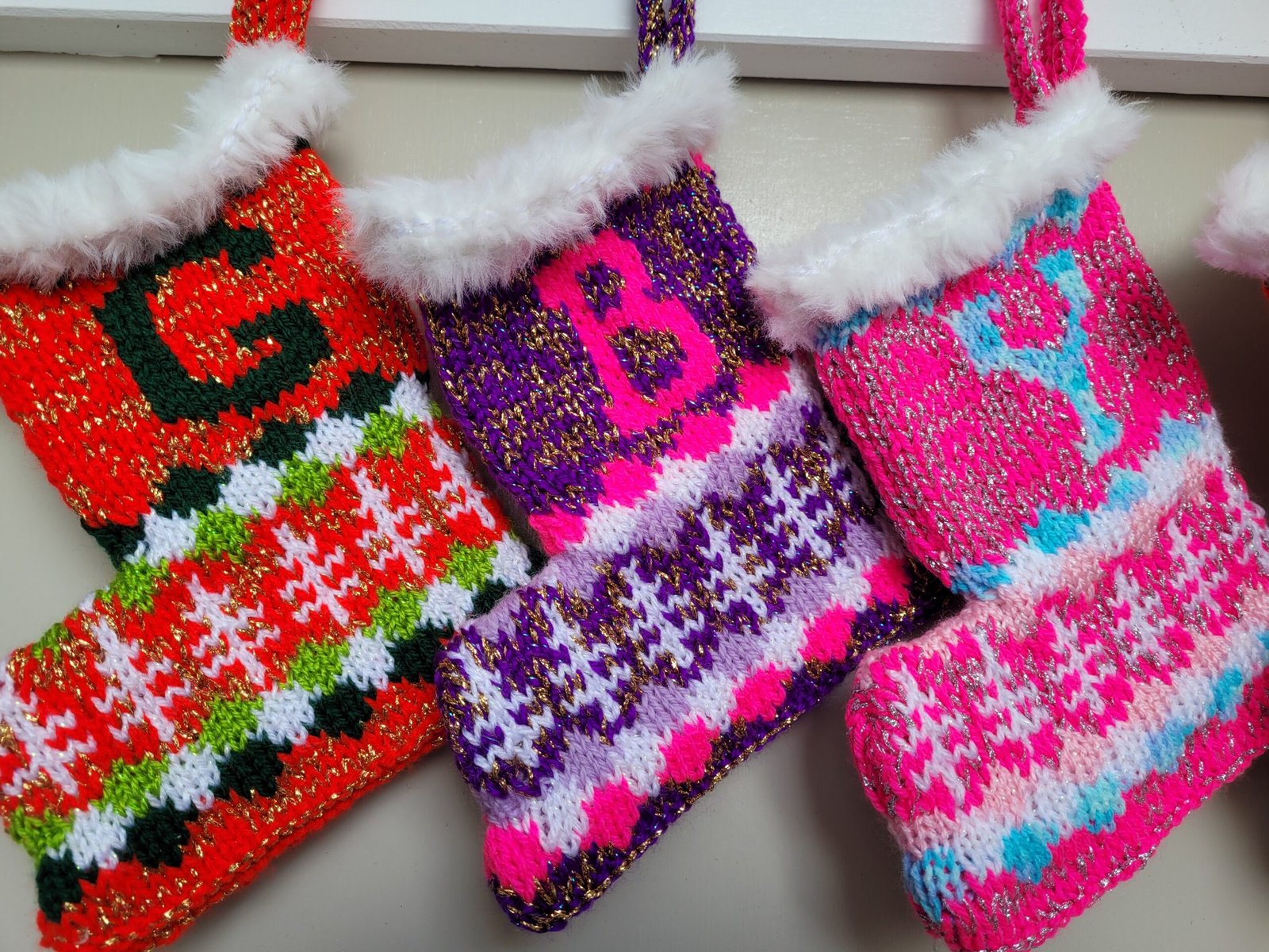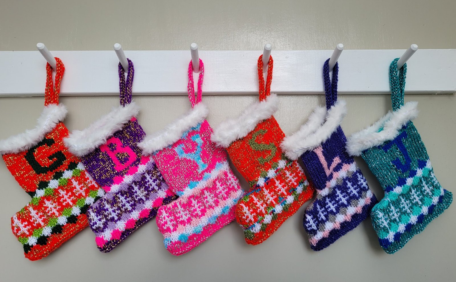 In some of the illustrated stockings we have used Jolly & Joy Sparkle 8 ply yarn or the thicker Jolly & Joy Chain yarn. You can also use Milford Metallic thread combined with a plain 8 ply yarn to achieve that same sparkly Christmas effect.