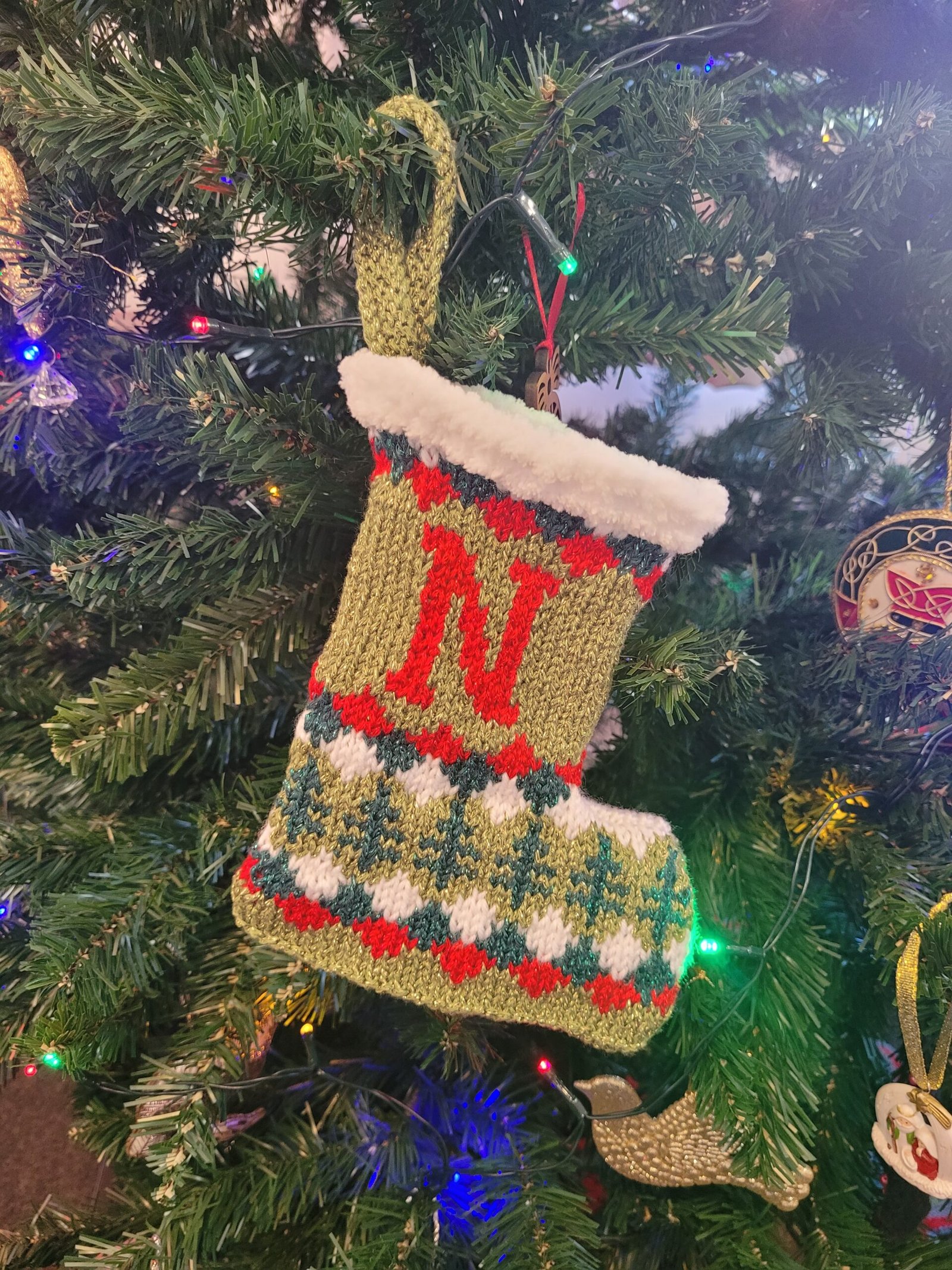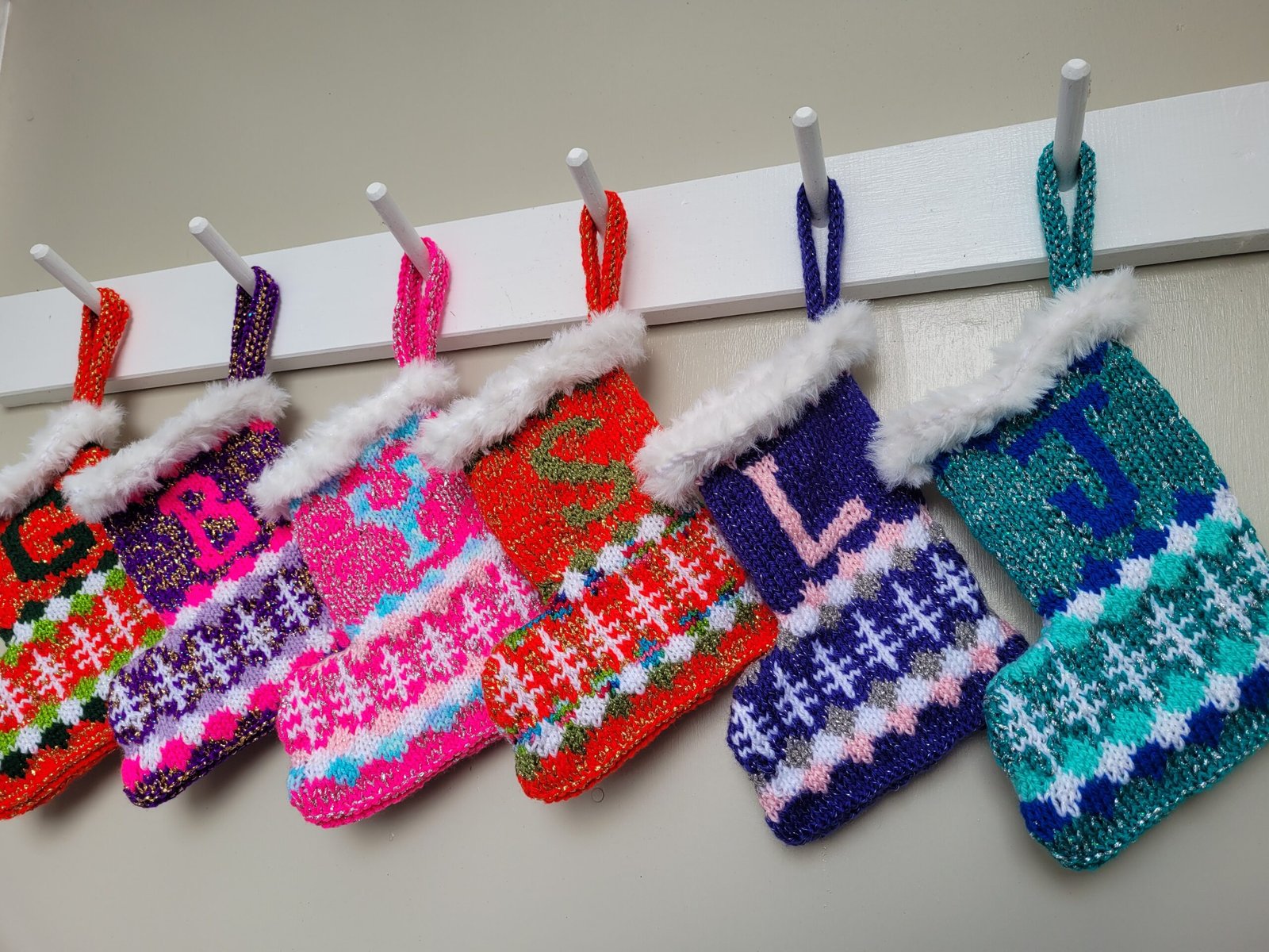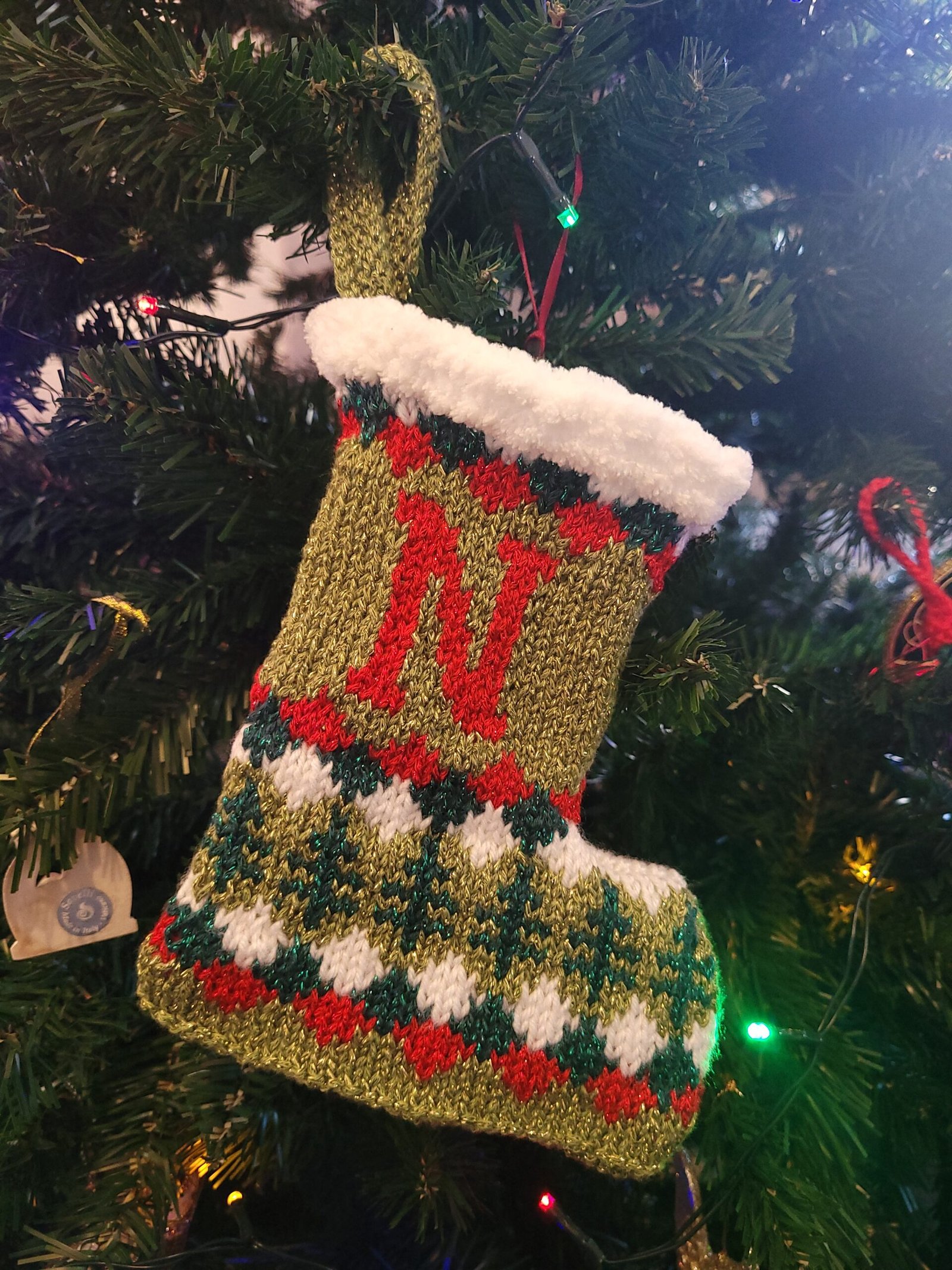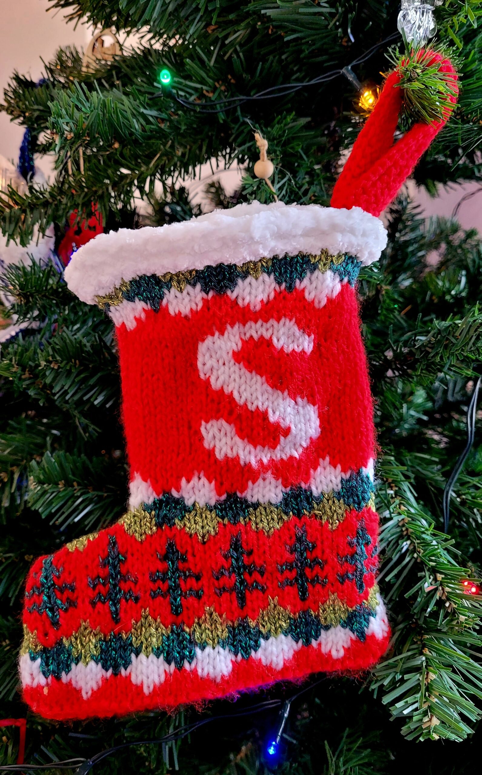 This easy to knit pattern uses 8 ply, Two A4 colour charts for both sides of the stocking are provided, plus graphs for the 26 letters of the alphabet. There is also a blank chart provided for alternative lettering.