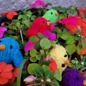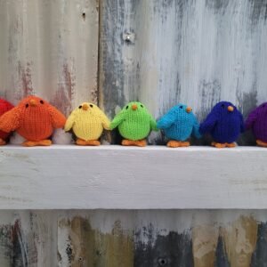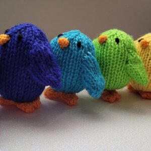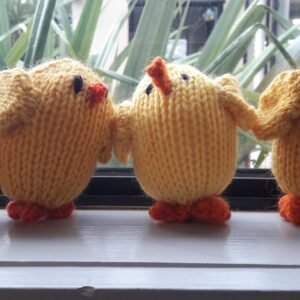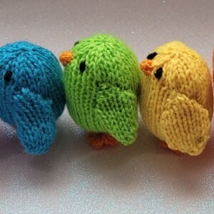 Suitable for new knitter who has mastered the basics. There is a little bit of sewing the pieces together but good practice for those bigger projects. The technique used to create the eyes is French knots.