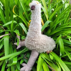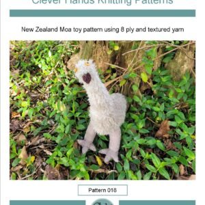 This friendly little Moa is suitable for a knitter with some experience with making soft toys. The trickiest parts were the feet. Sewing is required to the pieces together to make your new Moa friend. If you are a very firm knitter I’d recommend changing to 4.5mm needles. This will make it easier to knit your textured yarn which is likely to be thicker than 8 ply.